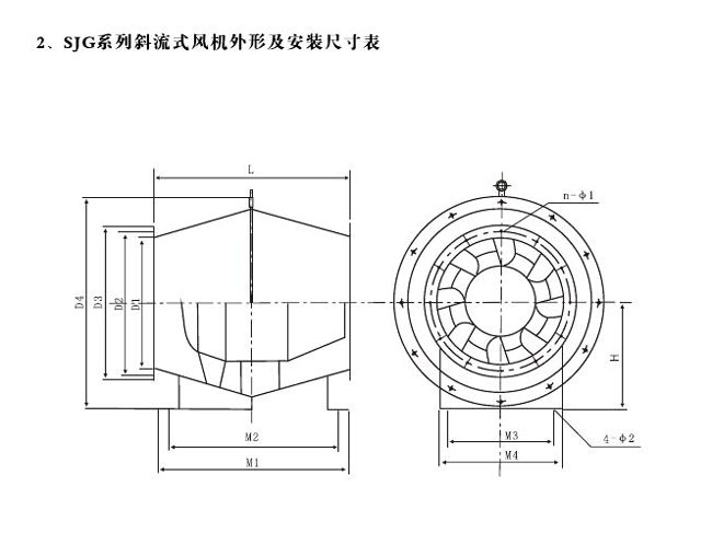 三、GXF、SJG系列斜流式風(fēng)機(jī)性能參數(shù)表